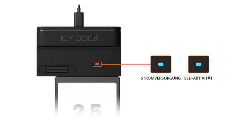 Hinweis: Bitte verwenden Sie das mit ICY DOCK gelieferte USB-Kabel. Wenn Sie ein Kabel mit denselben Spezifikationen haben, können Sie es austauschen, um zu prüfen, ob das Problem dadurch behoben wird.